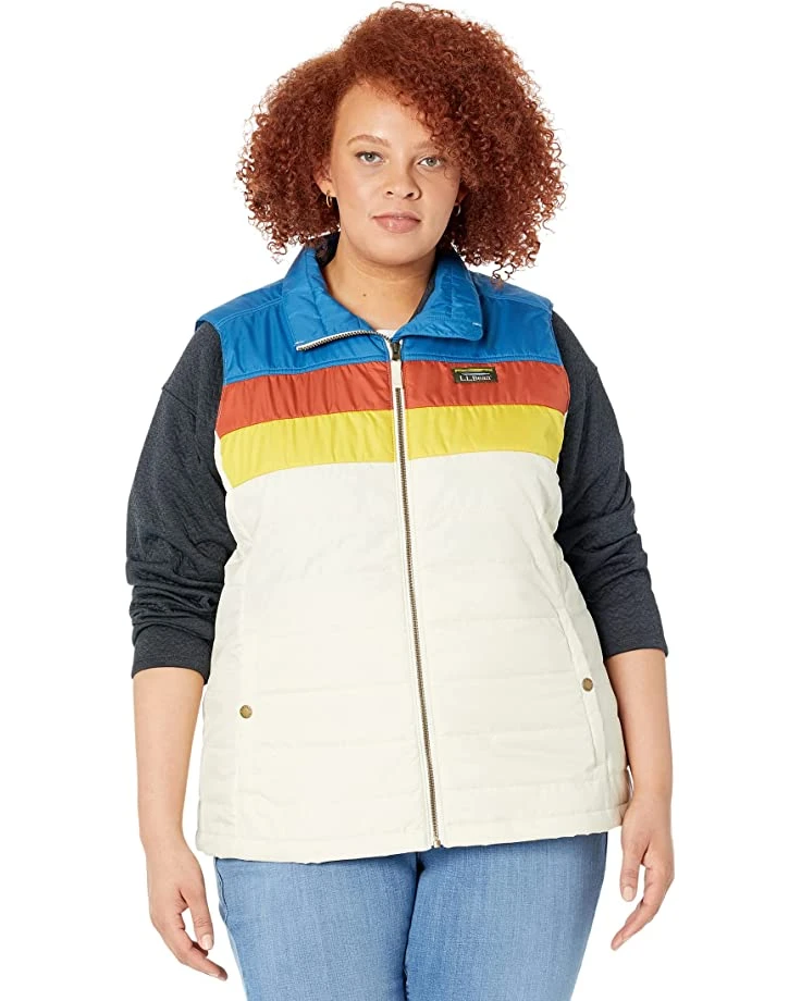 - Look chic while protecting yourself in the cold weather by wearing the L.L.Bean™ Plus Size Mountain Classic Puffer Vest Color-Block pattern.