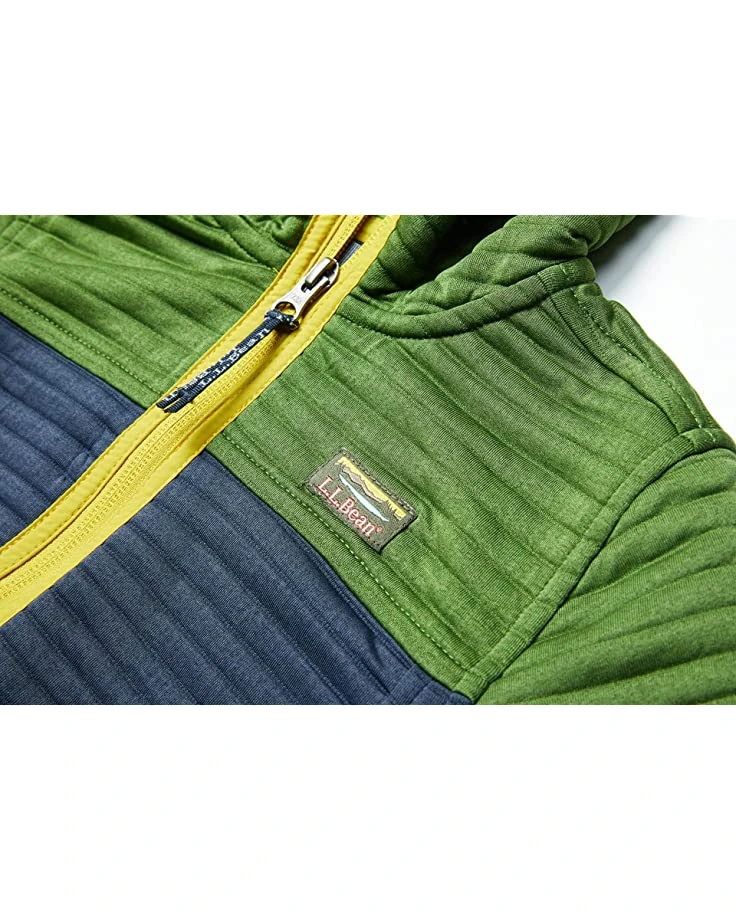- With a quilted construction throughout, attached three-panel hood, and lycra binding at the hood, cuffs, and hem, the L.L.Bean™ Airlight Full Zip Color-Block is the perfect comfy hoodie for those cold days.