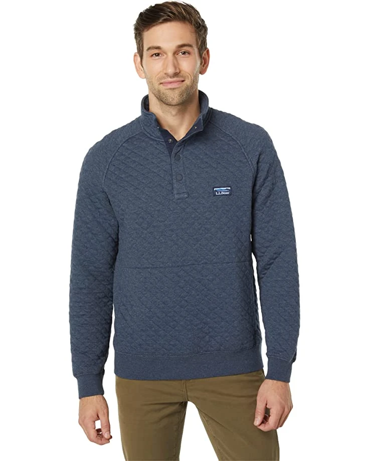 - It’s time to rethink what a sweatshirt can be. The L.L.Bean™ Quilted Sweatshirt Regular is as comfortable as you’d expect, but it also looks great – perfect for workdays, or day trips, or nights on the town. Crafted for warmth, comfort, and style this quilted pullover features a mock collar, center front quarter button closure, long sleeves with fitted cuffs, all over diamond stitch pattern design, lower front kangaroo pocket, and a straight hemline.